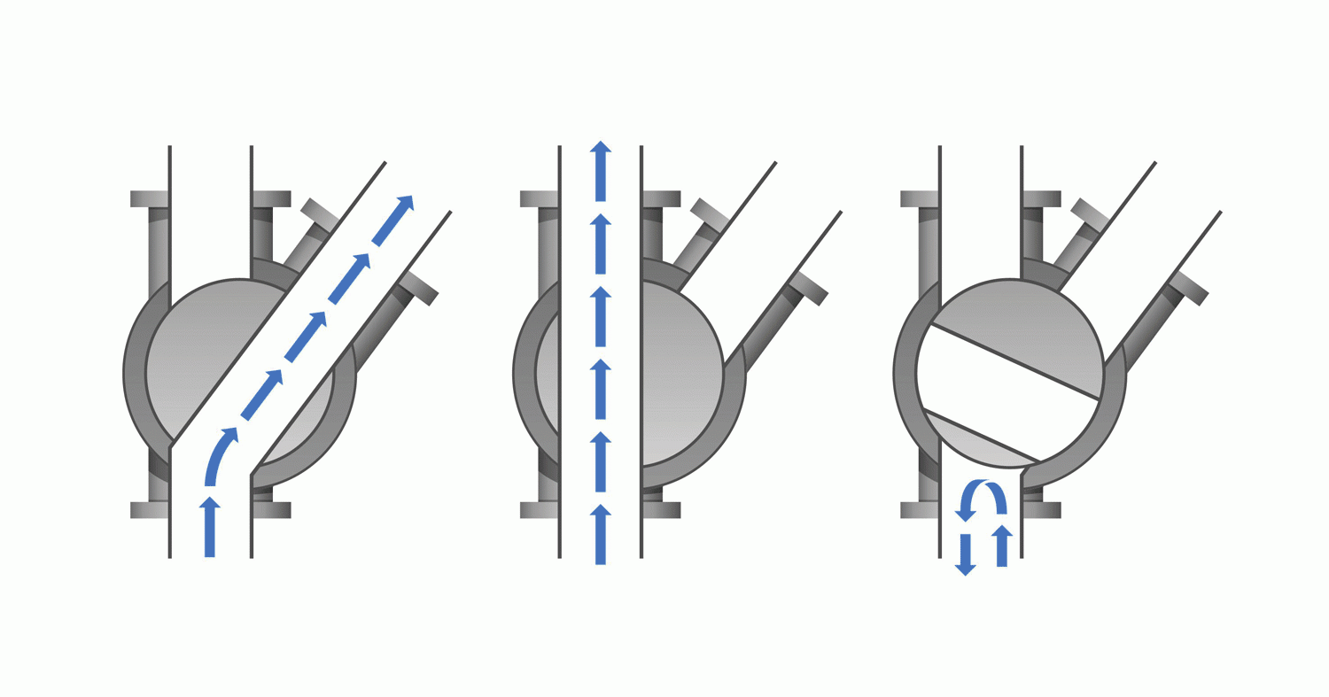 The whole process if filled with material and it keeps moving with gravity force while directed by the flaps. You can increase the diverter points. Instead of two, there can be three points of diversion from where three different diversions may take place.